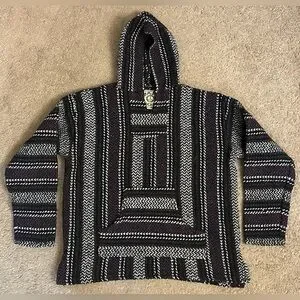 Baja Joe Mens M Purple White Gray Pullover Beach Hippie Hoodie Boho Well Loved