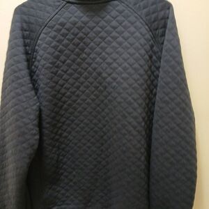 The L.L. Bean Quilted 1/4-Snap Sweatshirt Pullover in navy blue is a versatile and stylish outerwear piece for men. This mock neck sweatshirt features a classic fit, long sleeves, and quilted accents for added warmth and comfort. Made from a blend of polyester and cotton, it is suitable for various outdoor activities in the winter, fall, and spring seasons. The pullover style with 1/4-snap button closure and pockets make it practical for everyday wear, while the solid pattern and timeless design make it a wardrobe staple for any man's closet. As with any used clothing item expect signs of wear and tear.