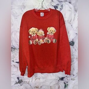Vintage 90s Christmas Teddy Bears Sweatshirt Holidays Santa Made USA Jerzees XL