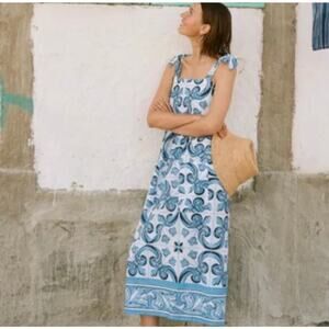 TUCKERNUCK blue majolica tile tie shoulder Tilly Caftan Maxi NWT Size XS