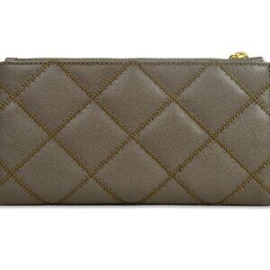 NWT! New!Tory Burch Willa Envelope Bi-fold handle Slim Wallet -Leather -Grey