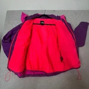 Conquer the elements with this vibrant The North Face insulated jacket. Its eye-catching purple exterior is accented with dynamic pink piping, creating a stylish silhouette that's ready for adventure. The bright pink interior lining adds a pop of color and warmth, ensuring you stay cozy and visible. Designed for ultimate comfort and protection, this jacket is perfect for hitting the slopes or braving a chilly day in the city.