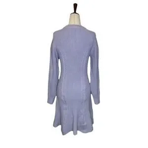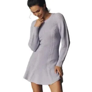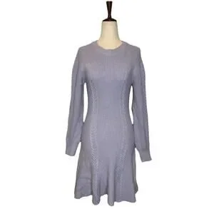 Anthropologie Skater Sweater Dress Sz M Rib Knit Lavender Crew Neck Long Sleeve