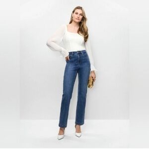 Elevate your style with this chic white blouse featuring elegant sheer sleeves. Perfect for any occasion, this top adds a touch of sophistication to your wardrobe.