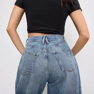 Good Extreme Barrel jeans feature a high-rise loose fit with wide balloon leg. Made with reinforced beltloops, flat tummy-tech and a gap proof waistband.
