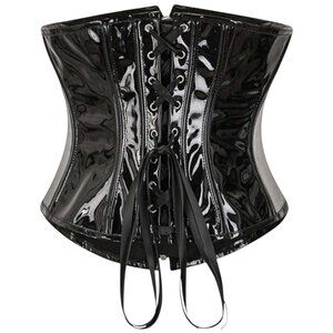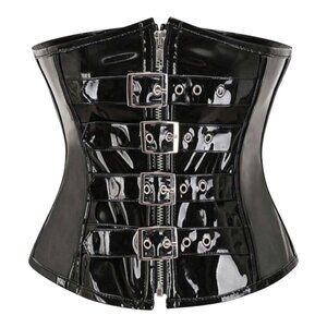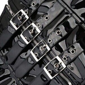 Women Punk Style Zipper Closure Bustier Waist Belt Cropped Corset