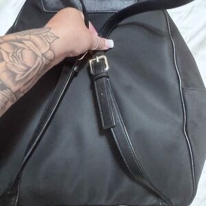 Stylish and versatile black backpack by Kate Spade. Perfect for everyday use with ample storage and sleek design. Some wear on straps lower right one has more wear as shown in photos.