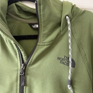 Olive green zip-up jacket by The North Face. Comfortable and versatile for everyday use.