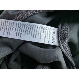 Make a bold statement with these chic Spanx faux leather camo leggings in size small, featuring a trendy matte black camo pattern. These pants are designed with a pull-on closure, flat front, and ankle style for a sleek and modern look. The power waistband enhances your curves while the shaping, stretch, and lifting features provide ultimate comfort and confidence. Perfect for both travel and casual occasions, these pants are made of a durable and stretchy nylon and spandex material that hugs your body for a slim fit. Shop now for the ultimate fashion statement!