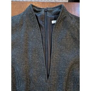 Look chic and professional in this stunning Coldwater Creek Flute Neck Sheath Dress. The knee-length black dress features a solid tweed fabric type with glitter accents and is perfect for any occasion, whether it's for a party, business event, or formal occasion. The dress has a flattering A-line style with a sleeveless design, and it comes with a zipper closure for easy wear.