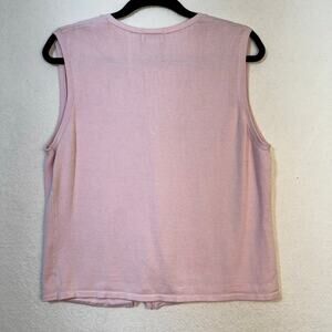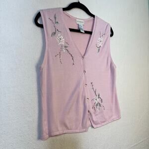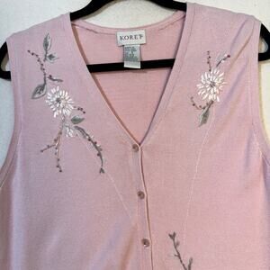Koret Light Pink Rayon Knit Sweater Vest Ribbon Floral Embroidery Granny Small