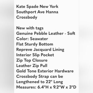 Kate Spade New York Southport Ave Hanna Crossbody - Pebbled Leather - NWT