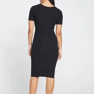 Effortless, flattering, and endlessly versatile. This Universal Standard ribbed bodycon dress in classic black features a twist detail under the bust for definition, a sculpted ribbed knit for curve appeal, and breathable stretch fabric that’s comfy enough for all-day wear. Perfect for work, nights out, or just a polished everyday look.