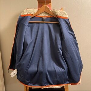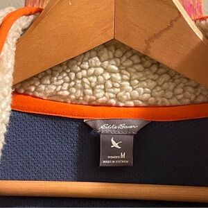 Eddie Bauer Rangefinder Sherpa Fleece Full Zip Up Coat Tan/ Navy size Medium