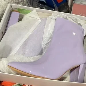 Elevate your look with these elegant lavender heeled boots. Perfect for adding a touch of sophistication to any outfit.