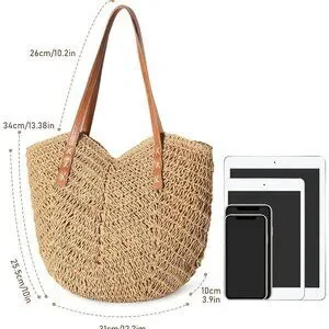 Size - Designed for versatility, this straw shoulder bag measures 10 12.2 inches with 10.2 inch straps. The compact design fits daily essentials like smartphones, lipsticks and a folded umbrella, though its capacity is better suited for personal use than family beach trips.