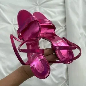 BRAND NEW! 100% AUTHENTIC! Minor scuffs and discoloration as seen in pictures but never worn! Vibrant pink heels with sleek straps. Signature red sole. Perfect for a bold statement.