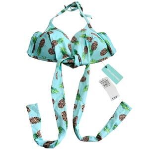 NEW Calzedonia Cobey Blue Pineapple Halter Bikini Size 38 Small
