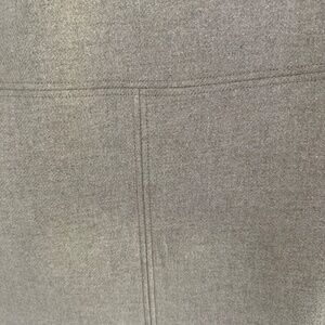 Tan funnel neck wool coat with front pockets and detailed seaming.