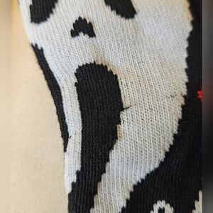 Elevate your outfit with these red, black, and white Ghostface socks. Perfect for thriller and scary movie lovers.