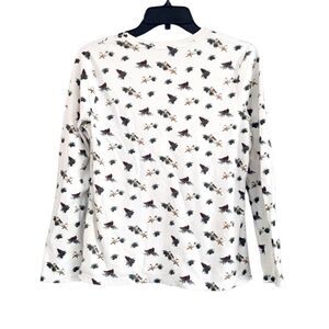 Cute white with red & gold snow bird print holiday long sleeve shirt. Pullover. Round neckline. 100% cotton fabric. In excellent preowned condition. Croft & Barrow Size Medium
