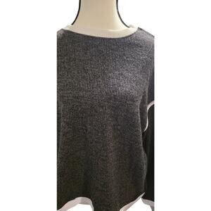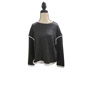Get cozy and with this adorable LOVESOFT sweater! Features a soft charcoal gray knit with cream trim.
