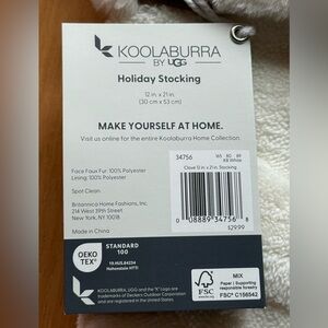 Koolaburra by Ugg White Clove Plush Christmas Holiday Stocking NWT