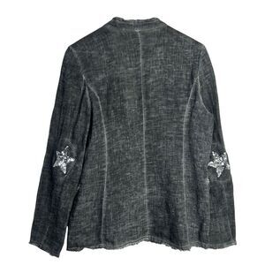 Venti6 Blazer Womens Large Gray Linen Jacket Frayed Hem Sequin Star Elbow Patch