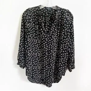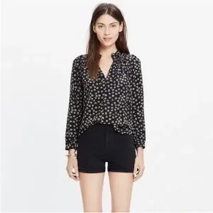 Madewell Memory blouse Stencil Blossom black floral silk high low medium