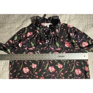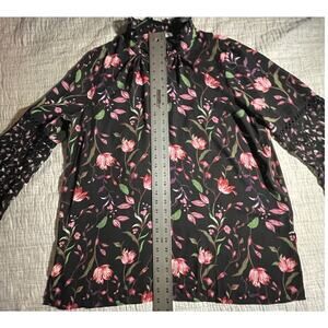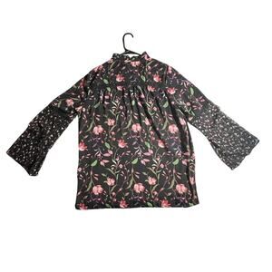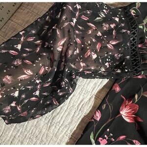 Fever Women’s Blouse -L- Black Floral Flutter Sleeves -Cottagecore Romantic-EUC