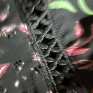 - Sheer flutter sleeves with contrast floral pattern and crochet detailing throughout