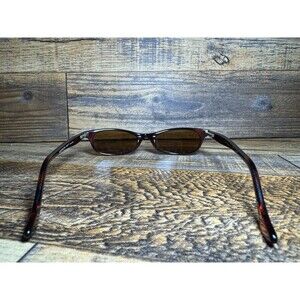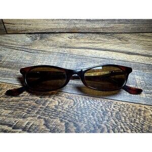 Kenneth Cole womens sunglasses featuring a brown tortoise frame with a subtle cat eye style and brown tinted lenses. Inside arm reads size 4718-140. Lightweight design with Kenneth Cole branding on the arms. Some light surface wear and a few scratches on the lenses (see last photo), but still a nice pair for everyday wear. Measurements also shown in photos. Great pre-owned condition.