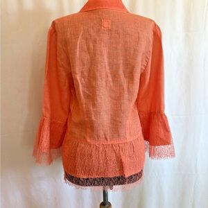 120% Lino Orange Linen Top W/ Lace Trim - Size 42 - US Small NWOT