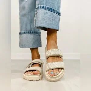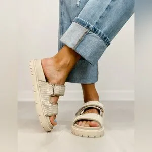 Show off those laid back vibes in the Gabri sandal from Mia. Featuring a crochet upper with adjustable hook and loop straps and a MIA signature contoured footbed for added comfort.