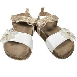 Girls Carter's Strap Sandals Flower White/gold 7c