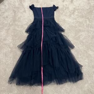 All orders ship within 1-3 business days. This women's formal dress is made by Betsy & Adam. Color is dark navy. The top has a corset, mini sleeve. The skirt has tulle throughout. Stunning dress! Size is 10. Excellent condition, new with tags. Fabric is polyester and spandex. Make me an offer!