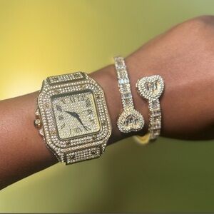 This stunning women's accessory set features a luxurious gold and silver watch paired with matching bracelets. Perfect for adding a touch of elegance to any outfit.