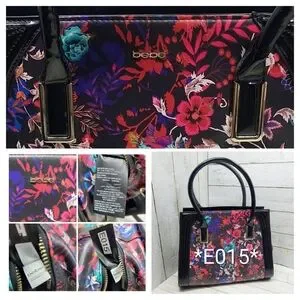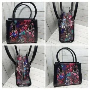 BEBE:[Black Multi-Floral Print Med/Lrg 2Handle Zip Pockets Square Satchel Handbag]