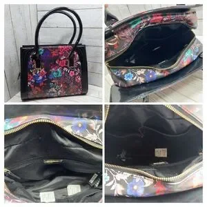 Bebe Black Multi-Floral Print Med/Lrg 2Handle Zip Pockets Square Satchel Handbag