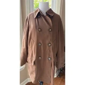 Jones New York Women Double Breasted Brown Cotton Blend Trench Coat Size Medium