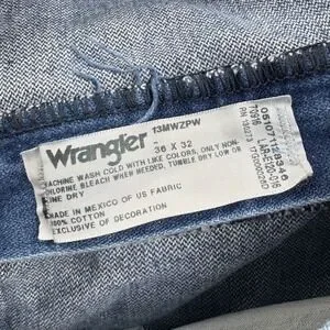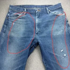 Keywords: Wrangler Jeans, Denim, Distressed, Relaxed Fit, Workwear, Casual, Outdoor, Vintage Wash, Streetwear, Rugged, Comfortable, Western