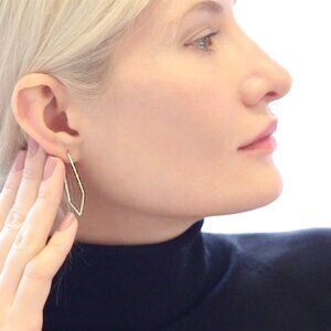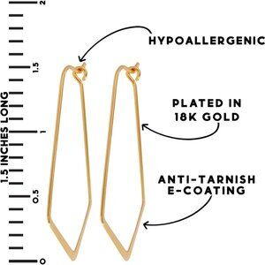 Features: Sleek geometric V-shaped chevrons with a thread-through design, crafted from high-quality brass and plated with 18K gold for a stunning shine. The ultra-lightweight construction makes them perfect for everyday wear. These hoops are versatile and elevate any look with their modern, minimalist appeal.