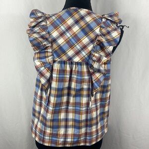 J. Crew 100% Cotton Plaid Ruffle Button Up Summer Shirt