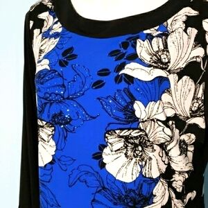 JM Collection Blue Floral Tunic size M