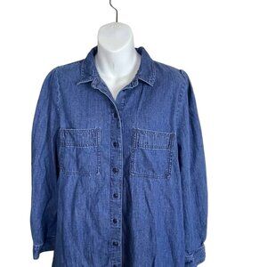 Madewell Denim Puff-Sleeve Button Up Shirt Dress Harris Wash Sz M K6059