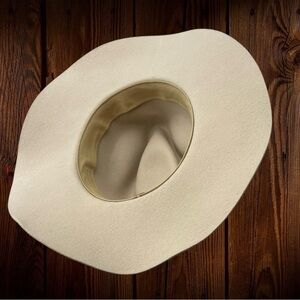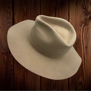 WYETH Wide Brim Fedora 100% Wool Felt Hat One Size Beige Neutral