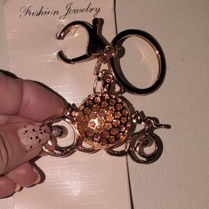Add a touch of elegance to your accessories with this stunning gold and red keychain. Perfect for adding a pop of color to your bag or keys. Beautiful carriage with red and clear crystals!