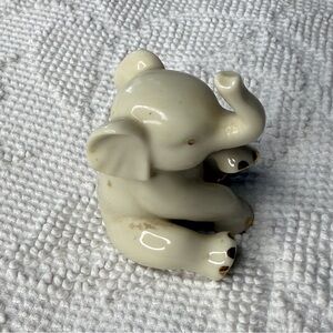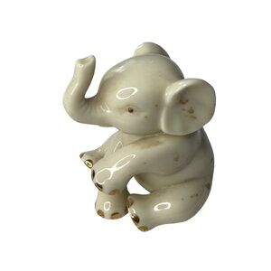 Vintage Lenox Baby Elephant Porcelain Figurine Lucky Trunk Up Gold Trim