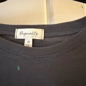 Charcoal tee with Nashville graphic. Sequin sleeves add sparkle. Womens size M.