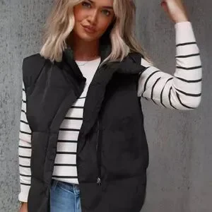 Stay warm and stylish with this sleek black puffer vest. Perfect for layering, it adds a chic touch to any outfit.